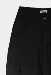 Possui cintura alta, cós com passantes e fechamento com zíper e botão.